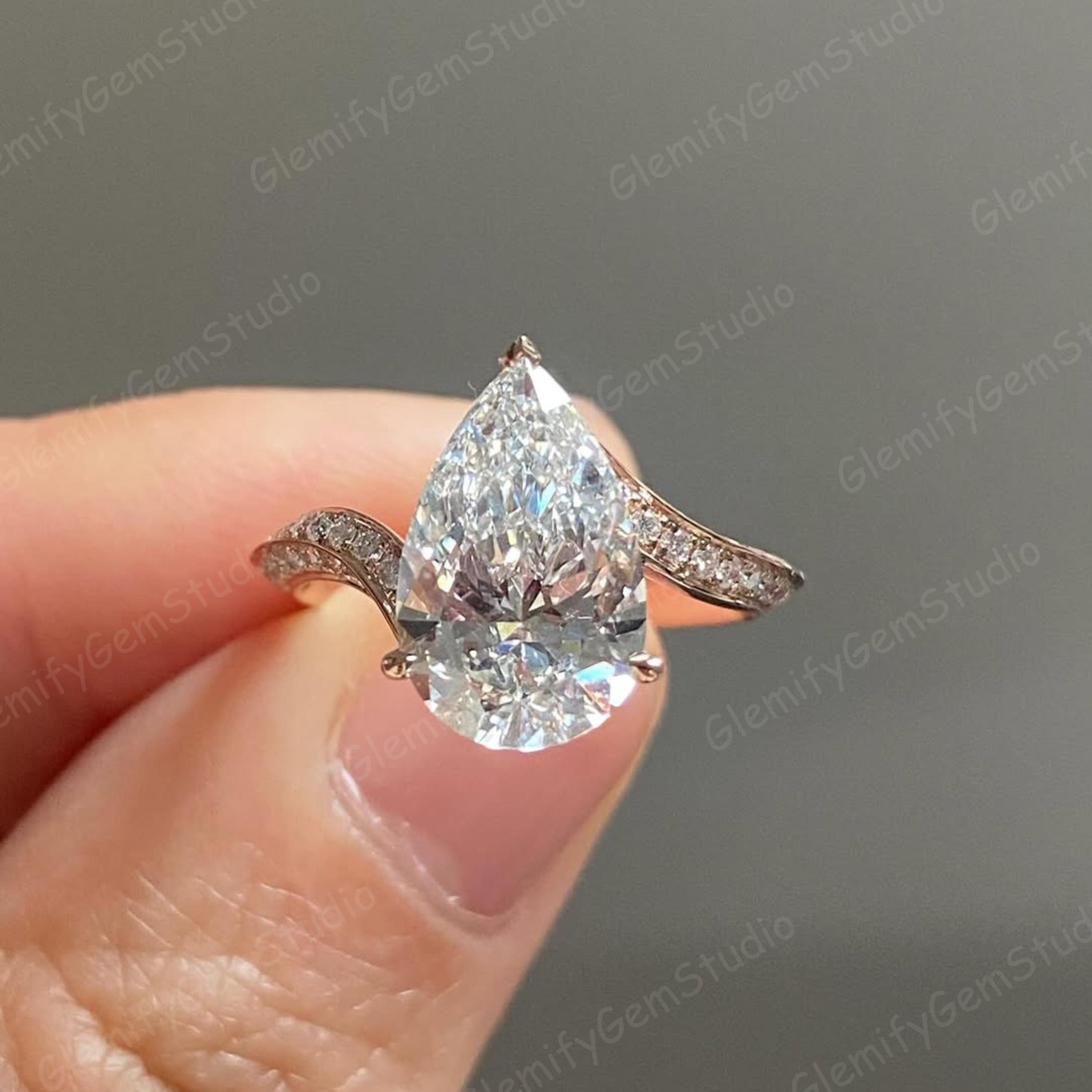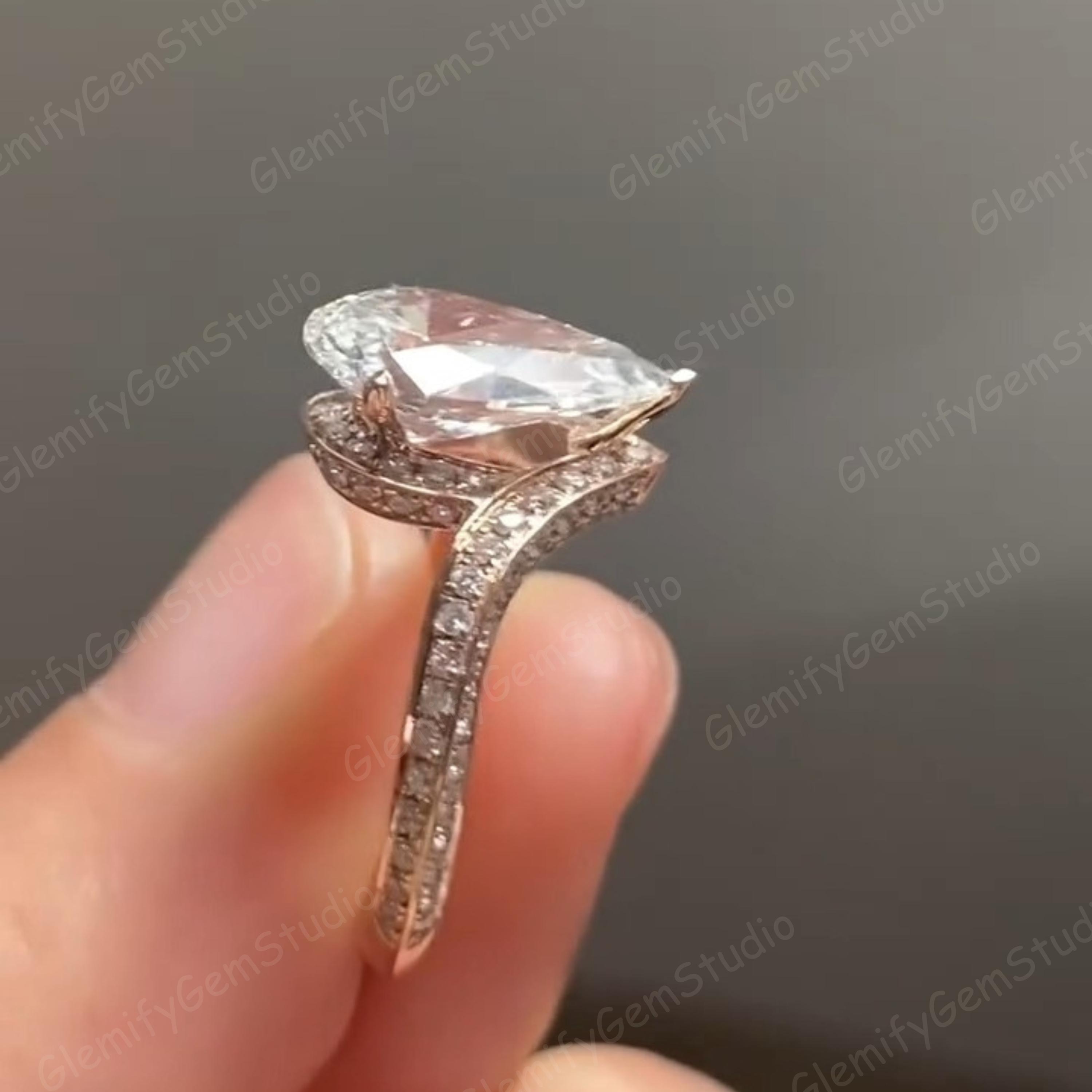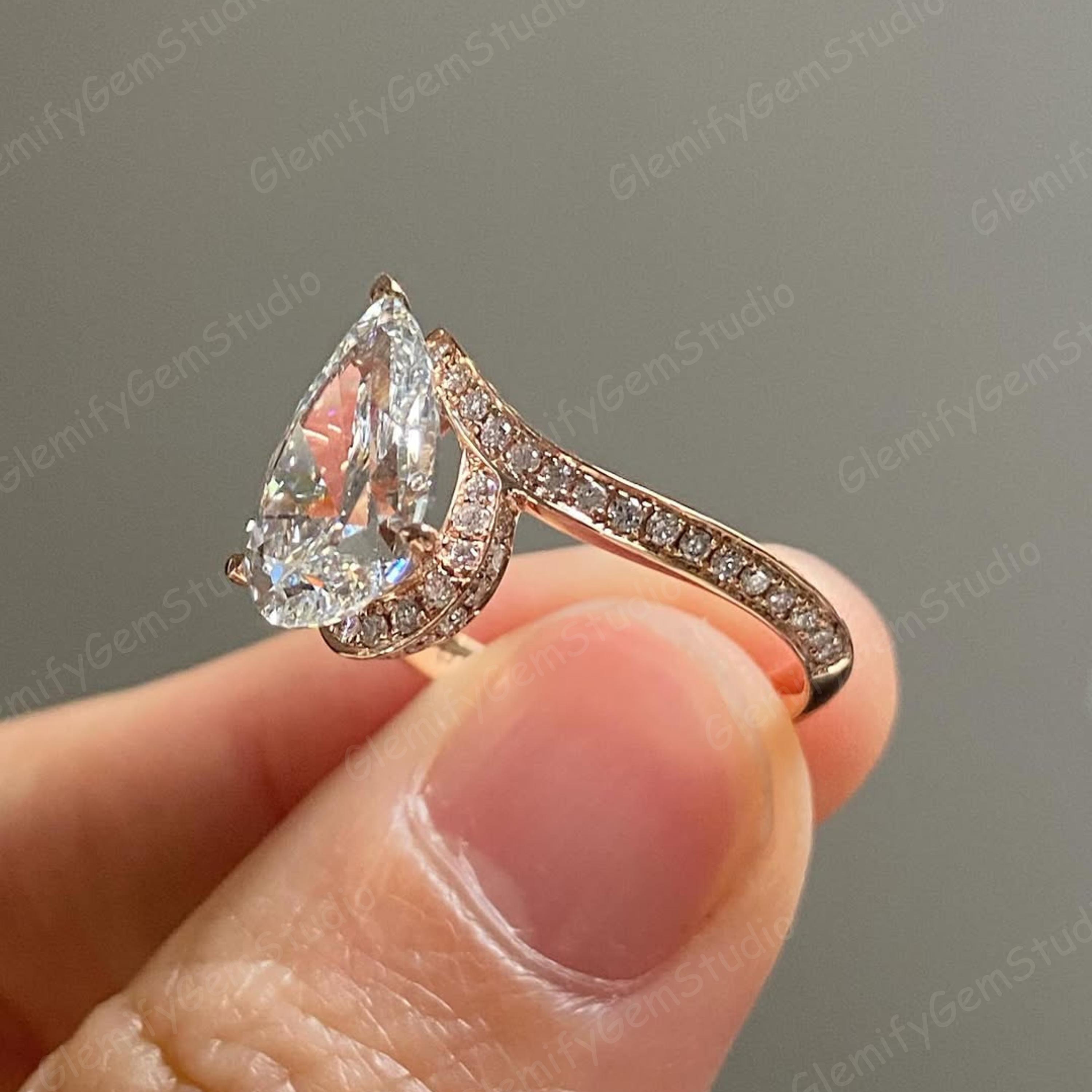 3 CT Pear Cut Moissanite Diamond Engagement Ring With Unique 14K Solid Gold Bypass Pave Set Band Wedding Ring Anniversary Gift Ring For Her