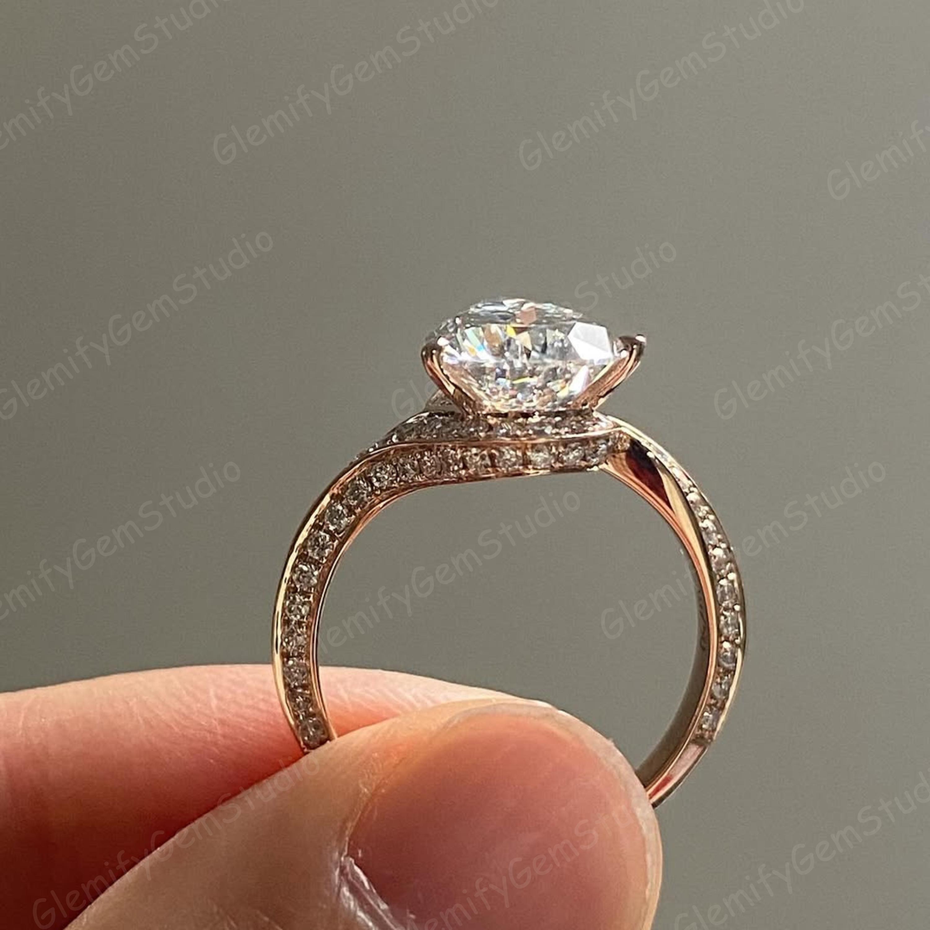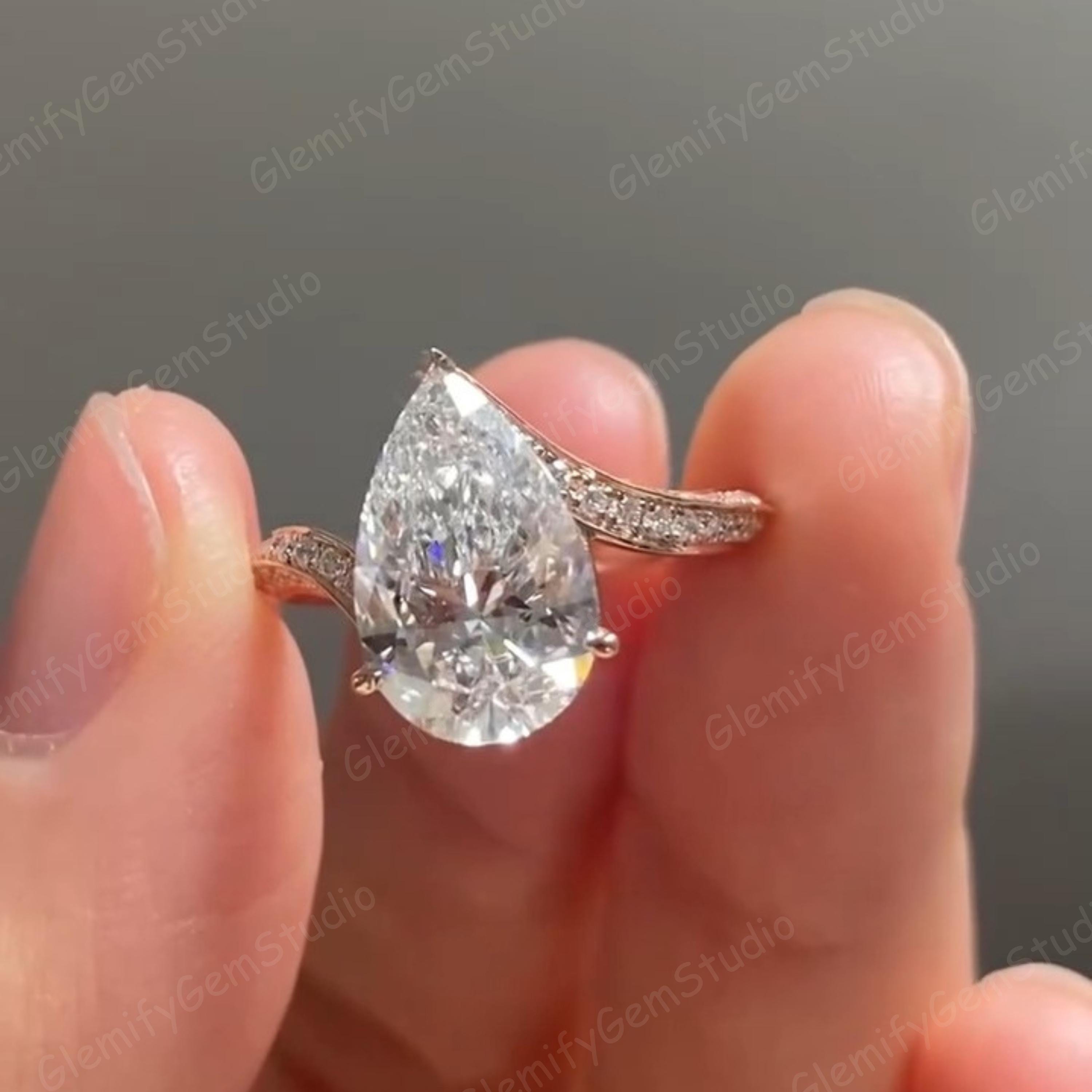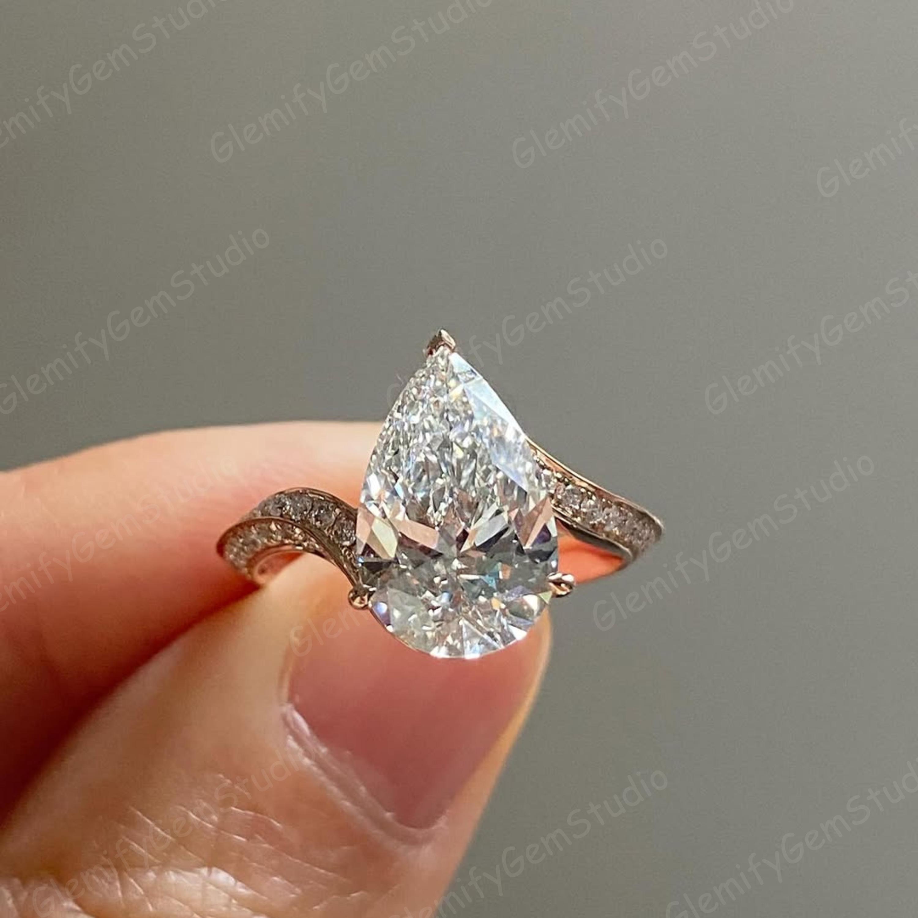 3 CT Pear Cut Moissanite Diamond Engagement Ring With Unique 14K Solid Gold Bypass Pave Set Band Wedding Ring Anniversary Gift Ring For Her