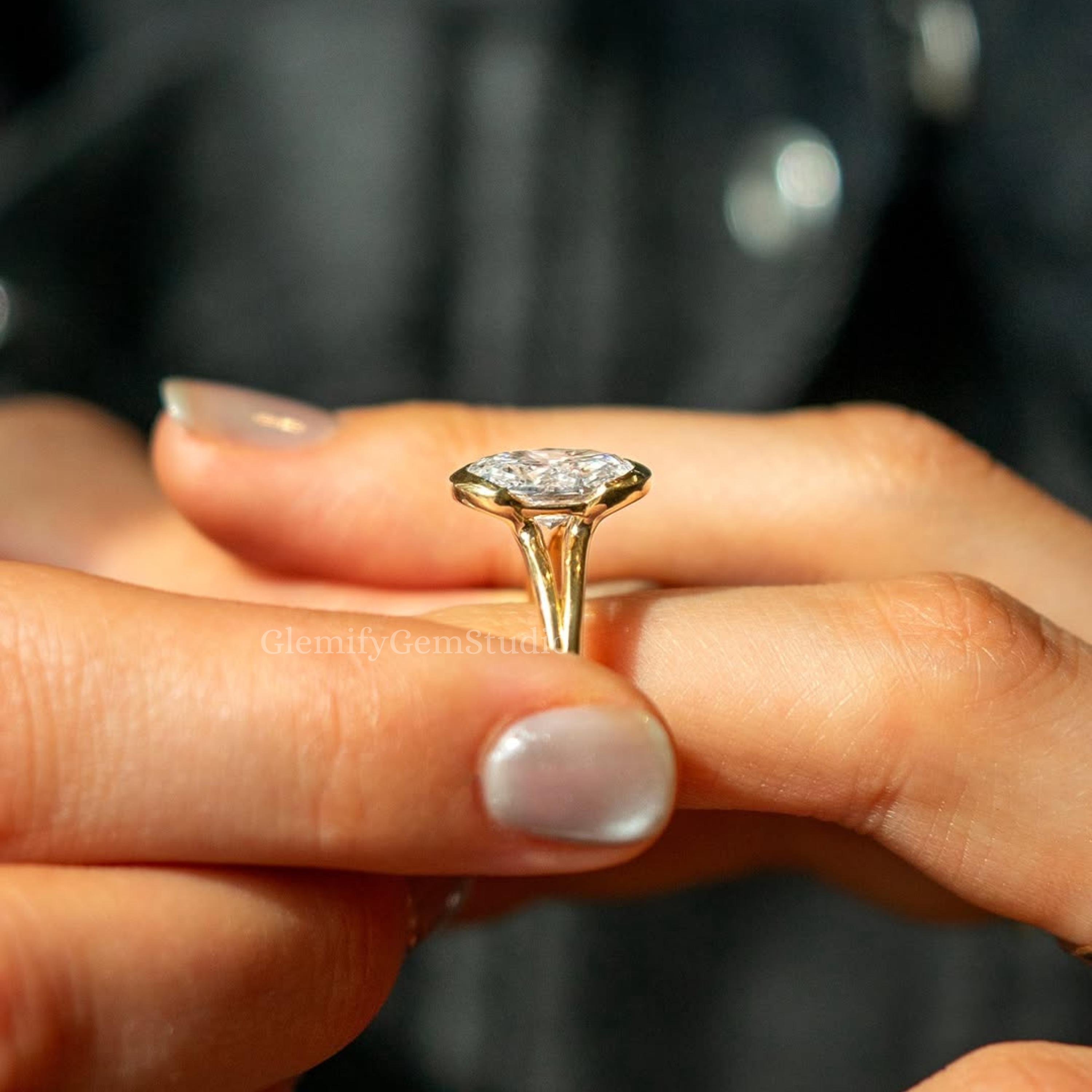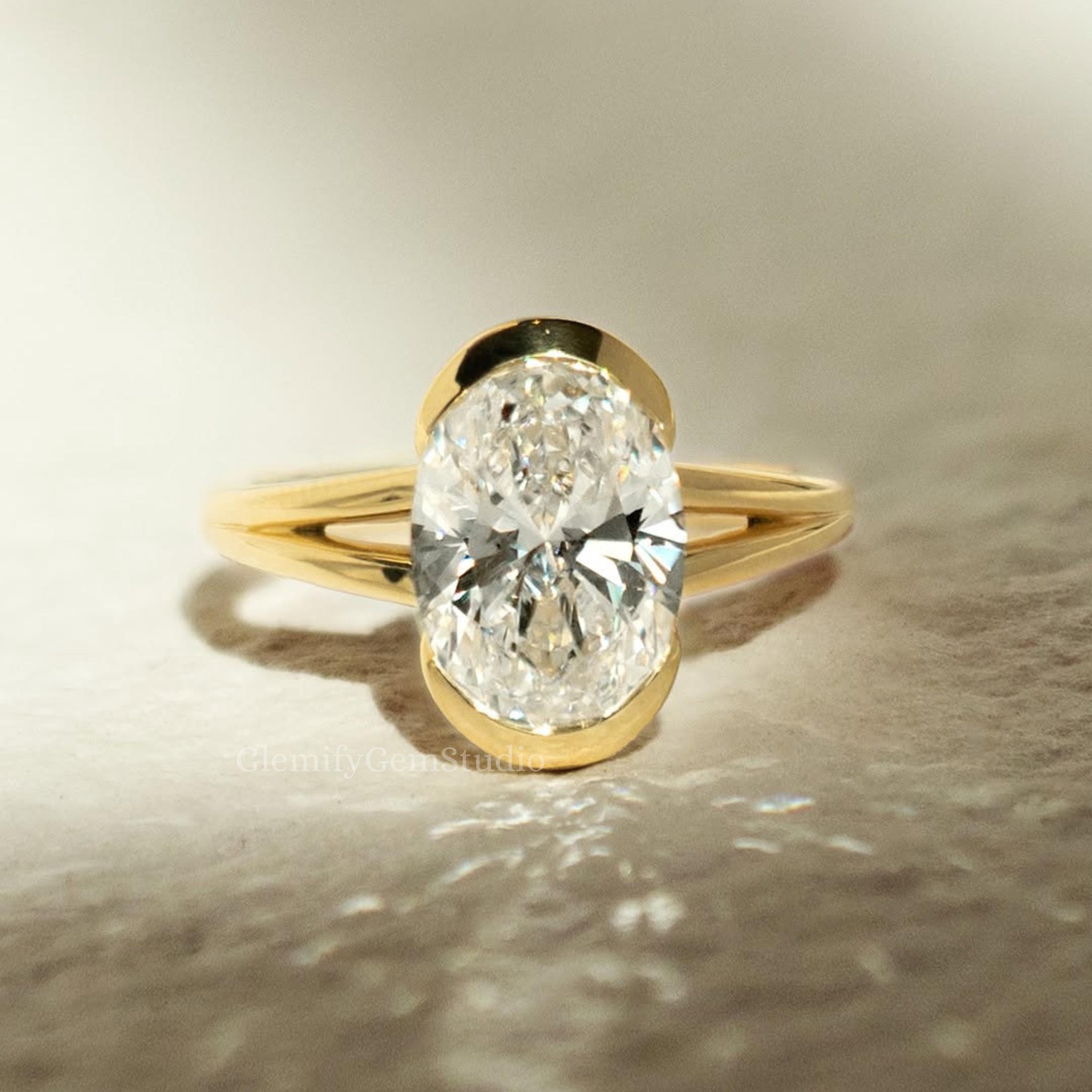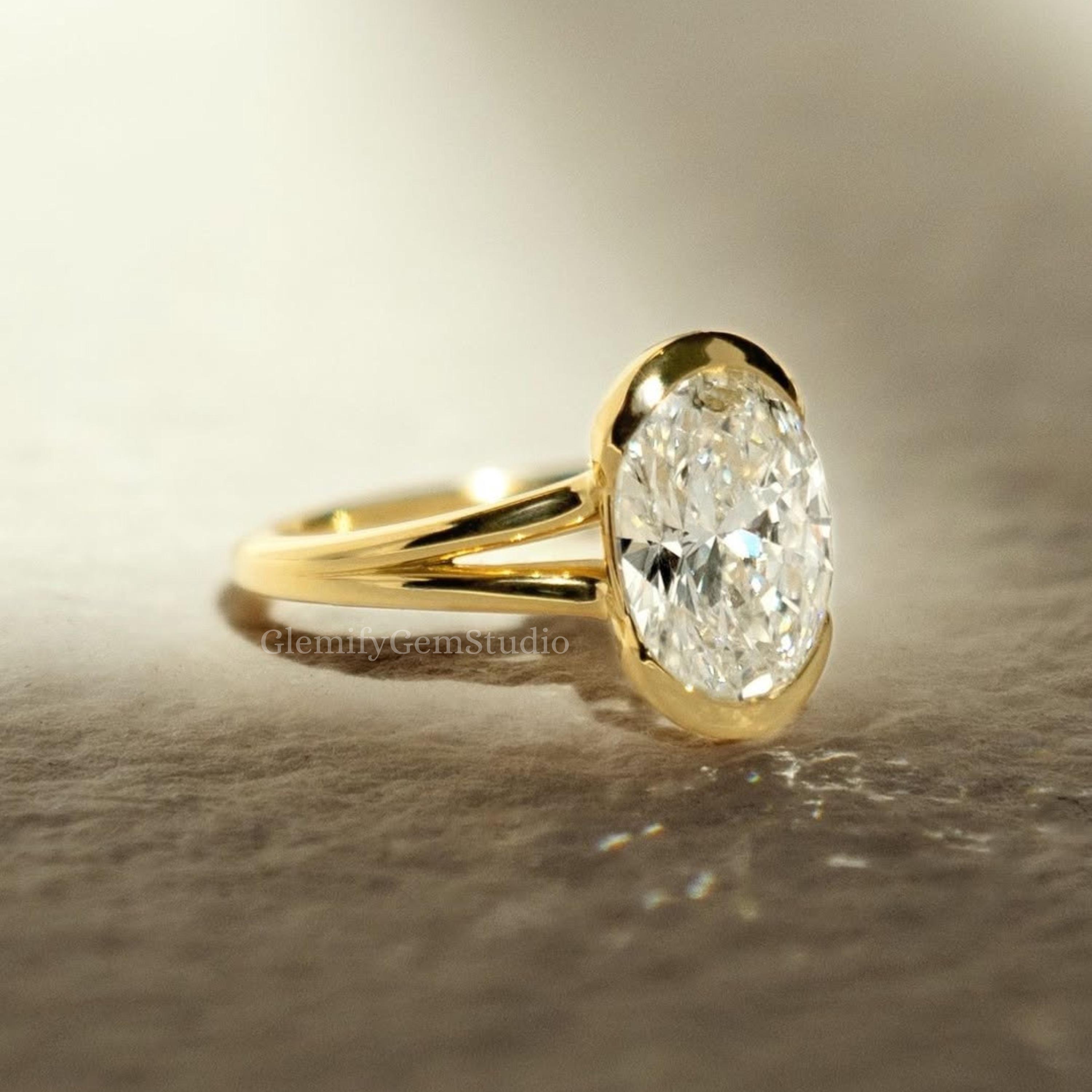 Half Bezel 3 CT Oval Cut Split Shank IGI Lab Grown Diamond Engagement Ring 14K Solid Yellow Gold Solitaire Wedding Ring Perfect For Her